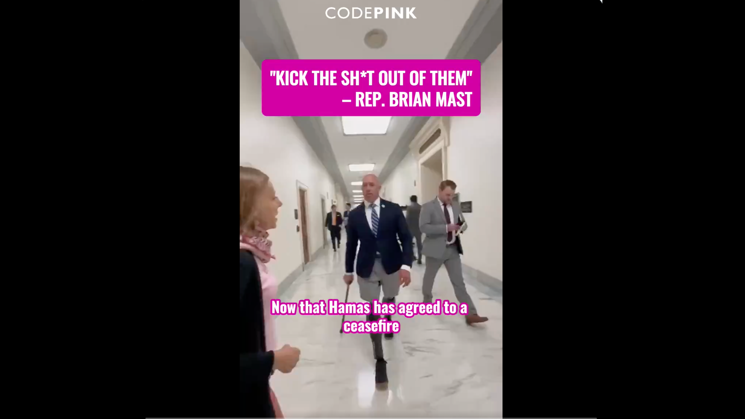 Rep. Brian Mast (R-FL) was not taking it from the nasty hags at Code Pink once they ambushed him concerning the proposed cease-fire take care of Hamas terrorists.