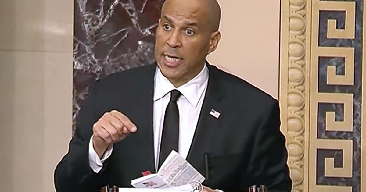 To the editor: Sen. Cory Booker is amazingly courageous and bodily sturdy to face and communicate for over 25 hours within the Senate (“Sen. Cory Booker units file with marathon Senate speech opposing Trump’s agenda,” April 1). The New Jersey Democrat spoke up for all Individuals who worth our shared democratic historical past and the weather that make our day by day residing worthwhile: public well being departments, medical analysis, clear air and water, climate stories, air journey, reproductive well being, medical insurance, civil rights safety, voter rights, respect for our allies and never pandering to dictators, to call just a few! Thanks, senator. Allow us to rally to guard the weather of our common lives which have made our nation nice!