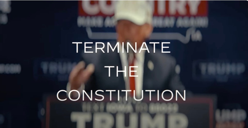 “Then he misplaced the 2020 election – and snapped. Desperately attempting to carry onto energy. Now he’s operating once more. This time threatening to be a dictator. To terminate the Structure,” he says.